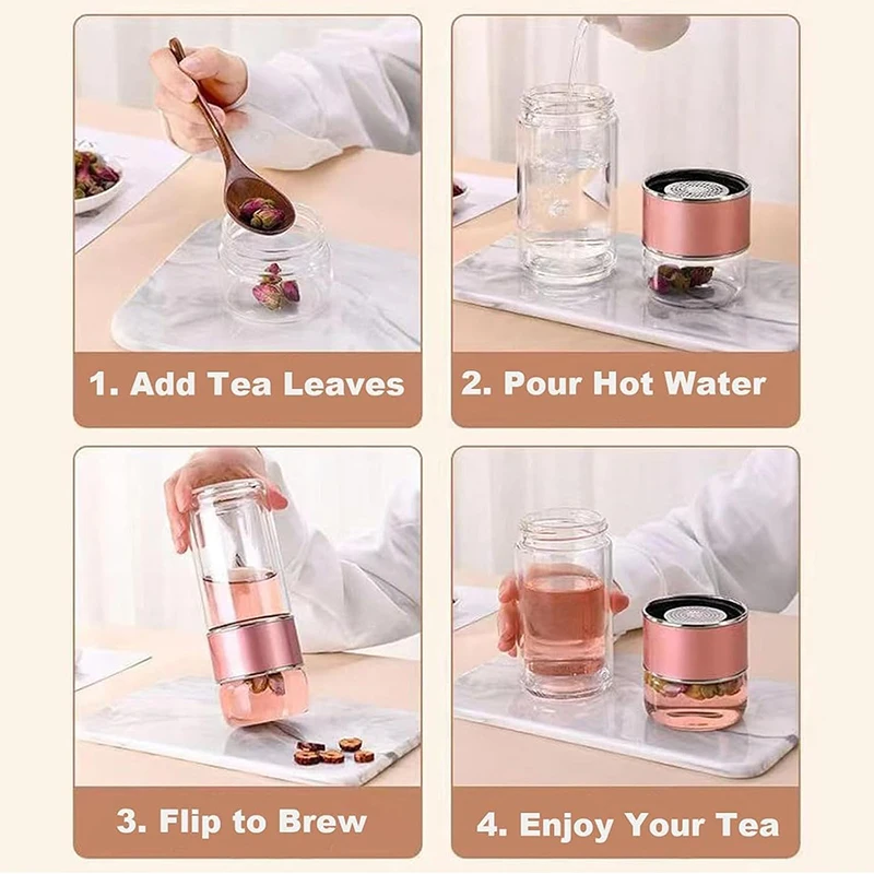 2. Design à Prova de Vazamentos: Prepare seu chá facilmente com o filtro integrado de aço inoxidável de qualidade alimentar. O infusor pode ser facilmente instalado ou removido. O material garante a resistência do copo ao choque térmico, tornando a garrafa infusora adequada tanto para bebidas quentes quanto frias. Ideal para os amantes de chá que desejam levar sua bebida a granel para qualquer lugar, a garrafa de vidro de aço inoxidável à prova de vazamentos é prática e fácil de usar.